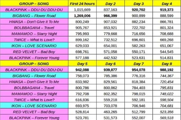 Ấp ủ gần 1 năm mới quay trở lại, 4 cô gái nhà YG đã có một kì comeback bùng nổ hơn bao giờ hết với mini album đầu tay Square Up và bài hát chủ đề Ddu-du Ddu-du. Không chỉ đơn giản là làm cho người hâm mộ thỏa mãn về phần nhìn lẫn phần nghe, BlackPink còn khiến các BXH phải chao đảo vì nhóm. Girlgroup này liên tục vượt mặt các thần tượng khác, thiết lập nên các kỉ lục khủng.