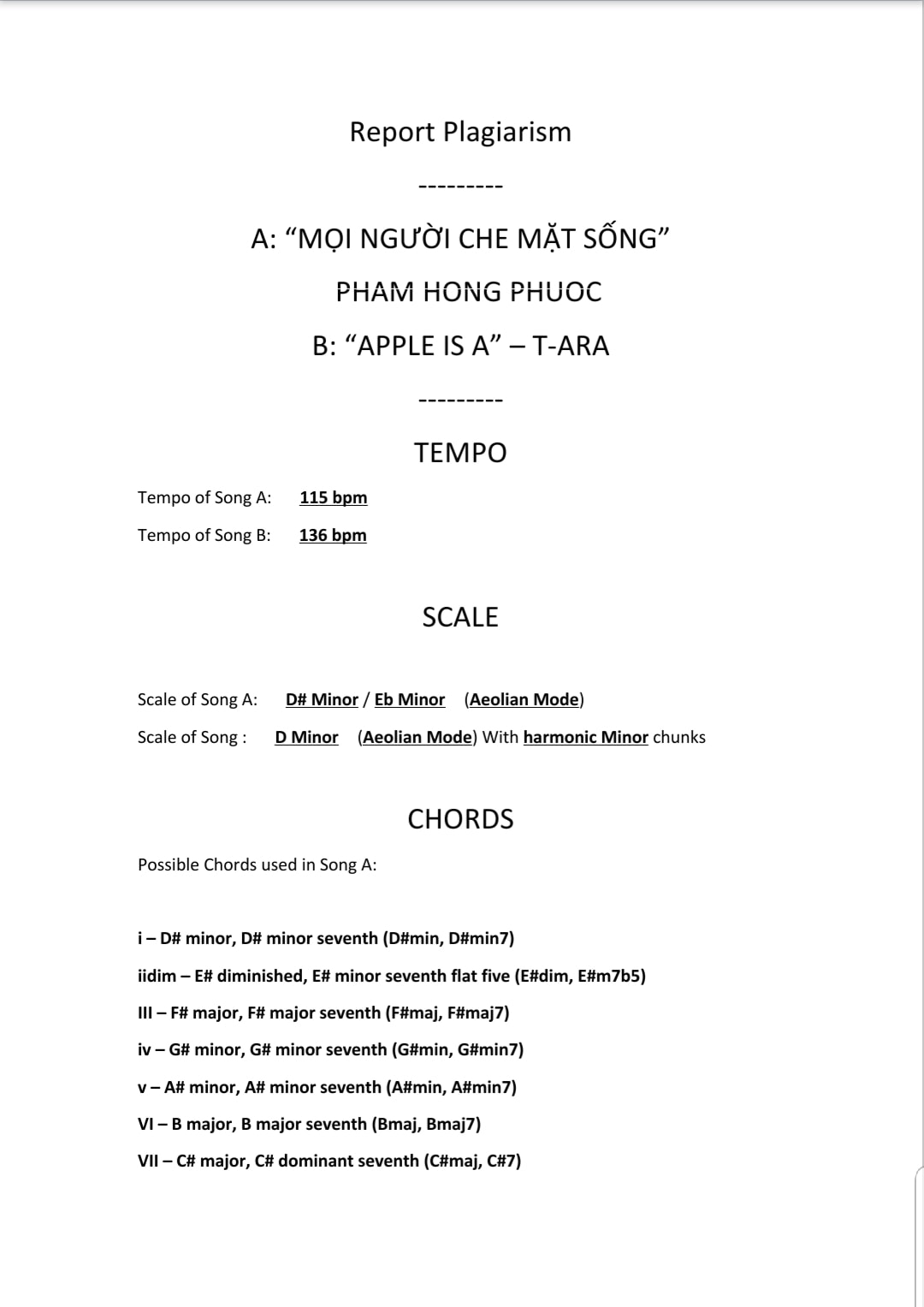 Sau đó, Phạm Hồng Phước đã đưa ra dẫn chứng về quá trình thực hiện ca khúc Mọi người che mặt sống. Đồng thời anh cũng khẳng định cụm từ “hao hao” mà nhiều người quy chụp đã sai ngay từ đầu vì chi tiết về đội ngũ sản xuất đã được nêu rõ trong phần credit. Nam ca sĩ cũng đưa ra chi tiết về những trường hợp được xem là đạo nhạc như: cùng tốc độ tempo, cùng thang âm, cùng tiến trình hợp âm, cùng vòng hòa âm,… Chốt lại vấn đề, Phạm Hồng Phước khẳng định không hề đạo nhạc ca khúc Apple Is A của T-Ara.