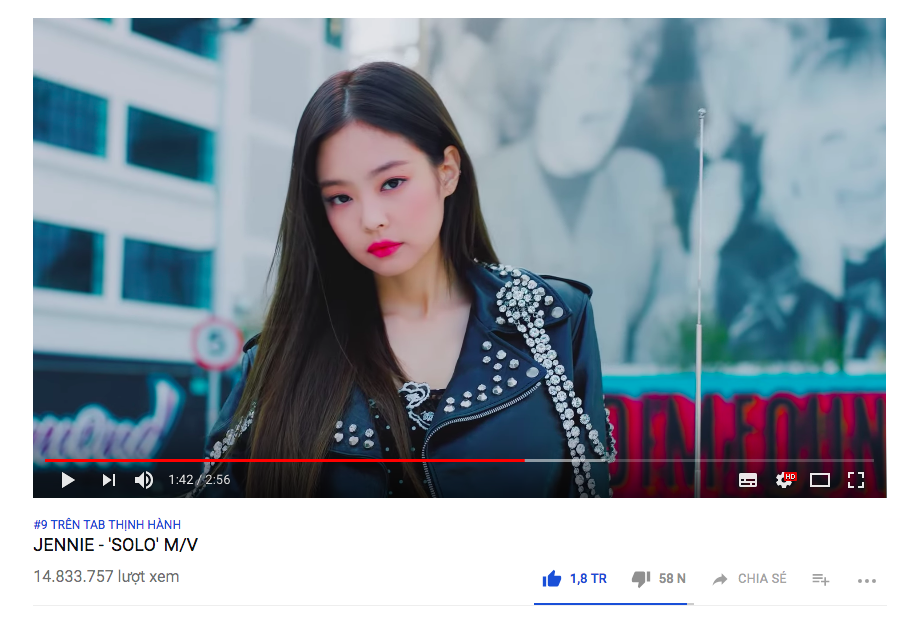 Chiều 12/11, một mẩu BLACKPINK là cô nàng Jennie đã chính thức phát hành MV “đánh lẻ” đầu tay mang tên SOLO. Sau đúng một ngày ra mắt, cô nàng đã thu về loạt thành tích khủng. Và quả không hổ danh là thành viên của nhóm nhạc được mệnh danh “bà hoàng Youtube”, khi tách ra solo Jennie cũng lập được những kỷ lục trên mạng xã hội video lớn nhất thế giới này.