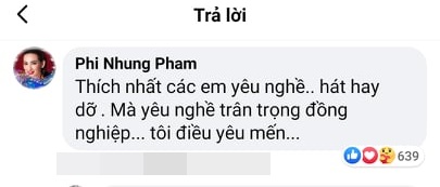 Ngay sau khi Chi Pu chia sẻ trạng thái này, rất nhiều khán giả và người hâm mộ đã để lại dưới bình luận những lời động viên, an ủi. Gây chú ý nhất trong đó phải kể đến bình luận của nữ ca sĩ Phi Nhung: “Thích nhất các em yêu nghề. Hát hay hay dở mà yêu nghề, trân trọng đồng nghiệp tôi đều yêu mến“. Người hâm mộ của Chi Pu đã cảm thấy rất ấm lòng trước lời động viên của Phi Nhung – Một nữ ca sĩ có tên tuổi và thâm niên trong nghề rất lâu.