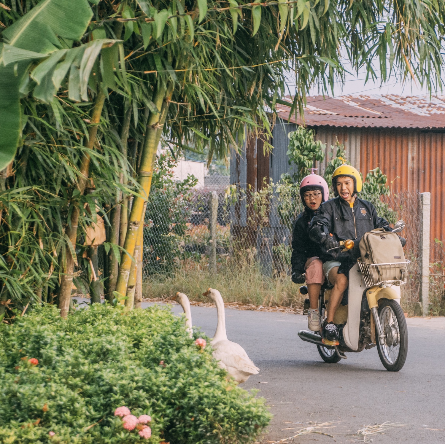 Giọng ca 17 tuổi kể: “Nếu quý vị xem qua MV Đường về quê chắc hẳn sẽ thấy có hai nhân vật rất đặc biệt, mà em cùng mọi người trong đoàn hay nói vui là diễn viên quần chúng - đó là hai chú ngỗng. Rất tội nghiệp hai bạn ngỗng vì phải bị mang từ TP HCM theo em đến 3,4 tỉnh thành. Ở quê, người ta thường nói là dùng ngỗng để giữ nhà vì rất là dữ. Theo dự tính ban đầu của ê-kíp, mọi người sẽ cho em và anh Su Su Gia Huy có một cảnh trêu chọc nhằm khiến ngỗng rượt. Song khi xuống tới nơi, hai bạn ấy đuối và không còn sức để rượt nữa - dù tụi em có chọc cách mấy cũng không rượt.