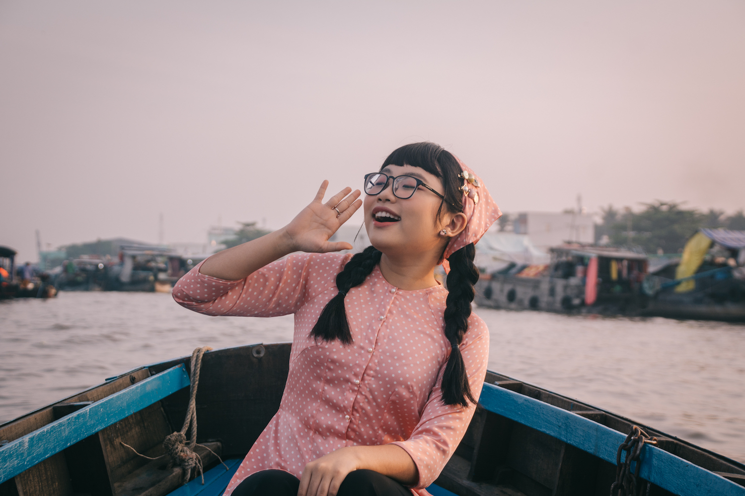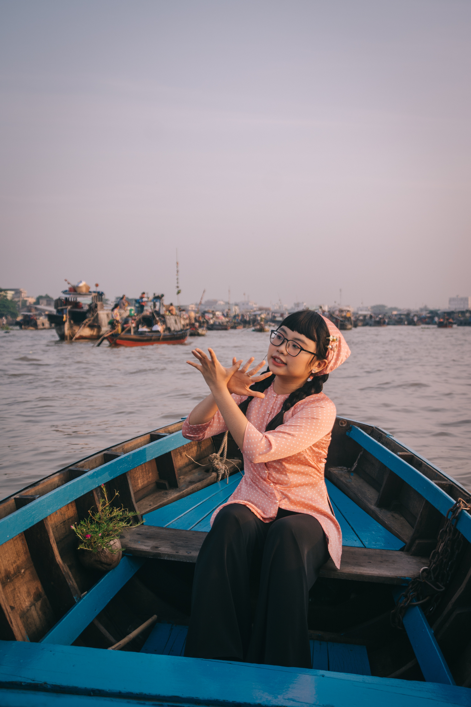 “Chi tiết em nhớ nhất nằm ở ngày quay đầu tiên. Do lu bu make up rồi chuẩn bị mọi thứ nên em không kịp ăn gì hết. Đến khi quay xong loạt cảnh ở chợ nổi về là em rất mệt và đói. Hôm đấy, má em mua quá trời bánh bò. Như mọi người cũng biết, bánh bò miền Tây rất ngon nên em mê và ăn ngay. Trong túi bánh có rất nhiều màu nên cứ màu nào em cũng thử, thử xong thấy màu nào cũng ngon rồi lại ăn tiếp và ăn rất nhiều. Chính vì lý do này khiến em bị nôn ói suốt. Cứ quay xong một cảnh là em lại nôn ói làm ê-kíp rất là lo, tưởng sức khoẻ em kém nhưng mọi người không có biết là do em ham ăn quá nên mới bị như vậy. Cả đoàn ai cũng cười sau khi được má em tiết lộ nguyên nhân. Giờ nhớ lại, em vẫn thấy vui” - Phương Mỹ Chi bật mí thêm.