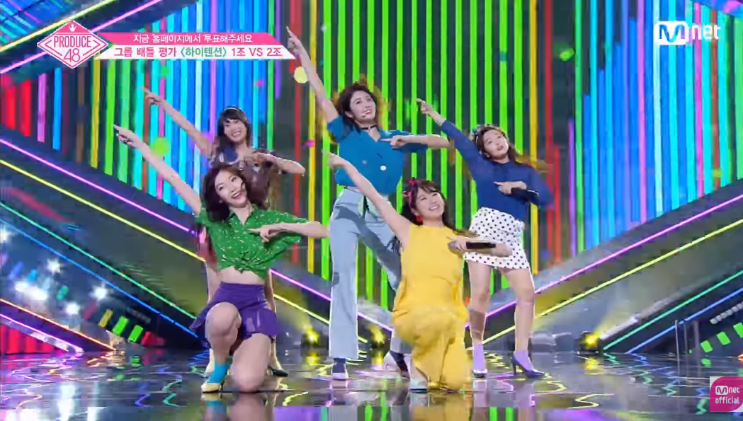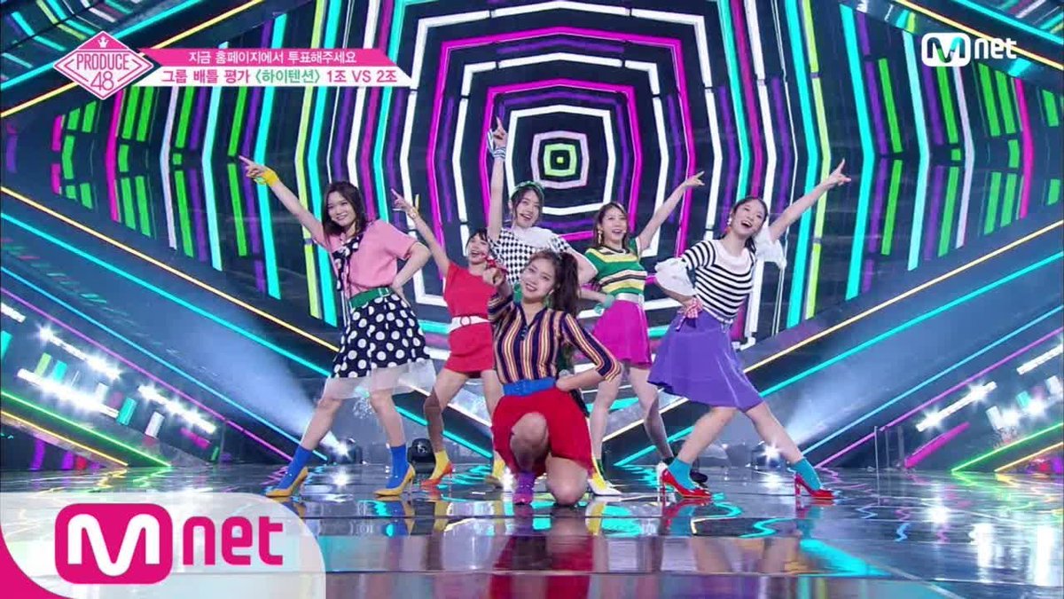 Nhóm chiến thắng ca khúc High Tension (AKB48) gồm: Heo YooJin (188 vote), Cho Ahyeon (160 vote), Takeuchi Miyu (84 vote), Oda Erina (60 vote) và Kim Suyun (12 vote). Điểm trung bình là 101.2. (Nếu như 2 đội thi không đồng đều về số thành viên thì sẽ phân thắng thua bằng điểm trung bình).