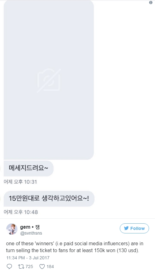 Và sau cùng, người này đã bán chiếc vé dự fan meeting với giá 150.000 won