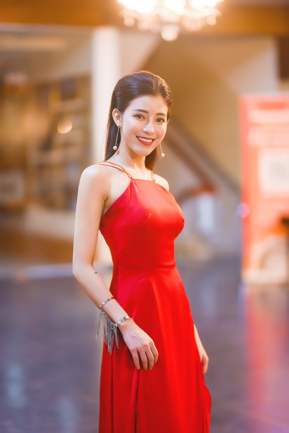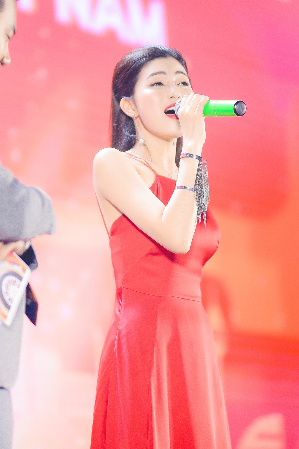 Nữ ca sĩ diện bộ đầm đỏ nổi bật, không kém phần quyến rũ.
