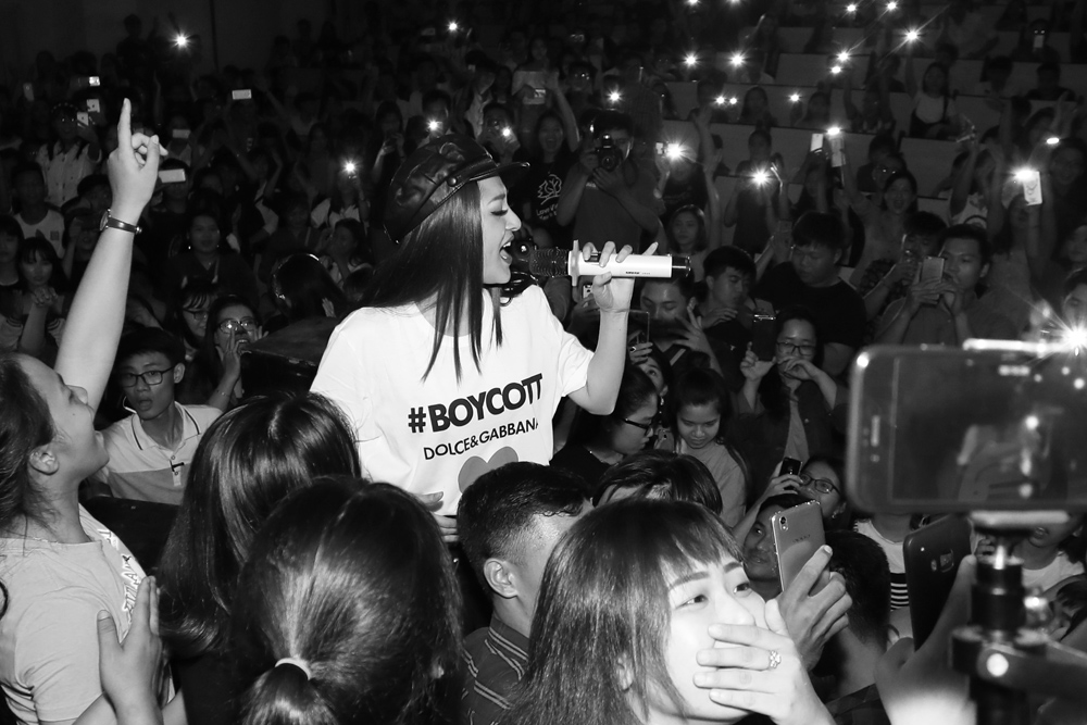 Phần trình diễn từ nữ ca sĩ xinh đẹp nhận được những tràng pháo tay, reo hò không ngớt.