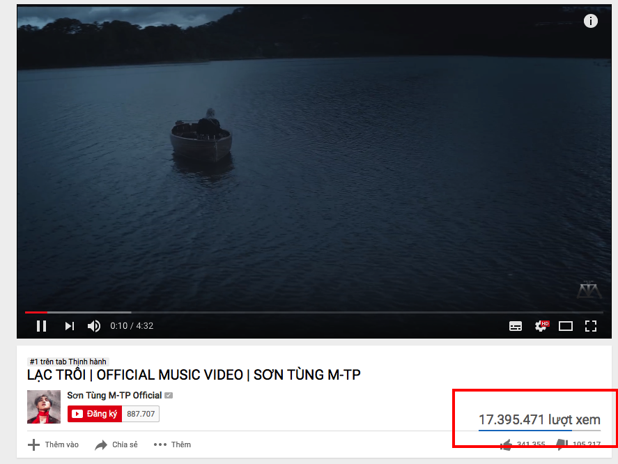 Sau 4 ngày kể từ khi ra mắt, MV Lạc trôi của Sơn Tùng M-TP đã đạt con số khủng: Hơn 17 triệu lượt xem. Đây là sản phẩm đánh dấu sự trở lại và hoạt động độc lập của chàng ca sĩ gốc Thái Bình. Trước khi MV ra mắt, có nhiều ánh mắt nghi ngại về một dự án không có sự hậu thuẫn từ công ty Wepro cũng như hàng loạt thắc mắc xoay quanh mối quan hệ của Sơn Tùng và Quang Huy ở thì hiện tại.