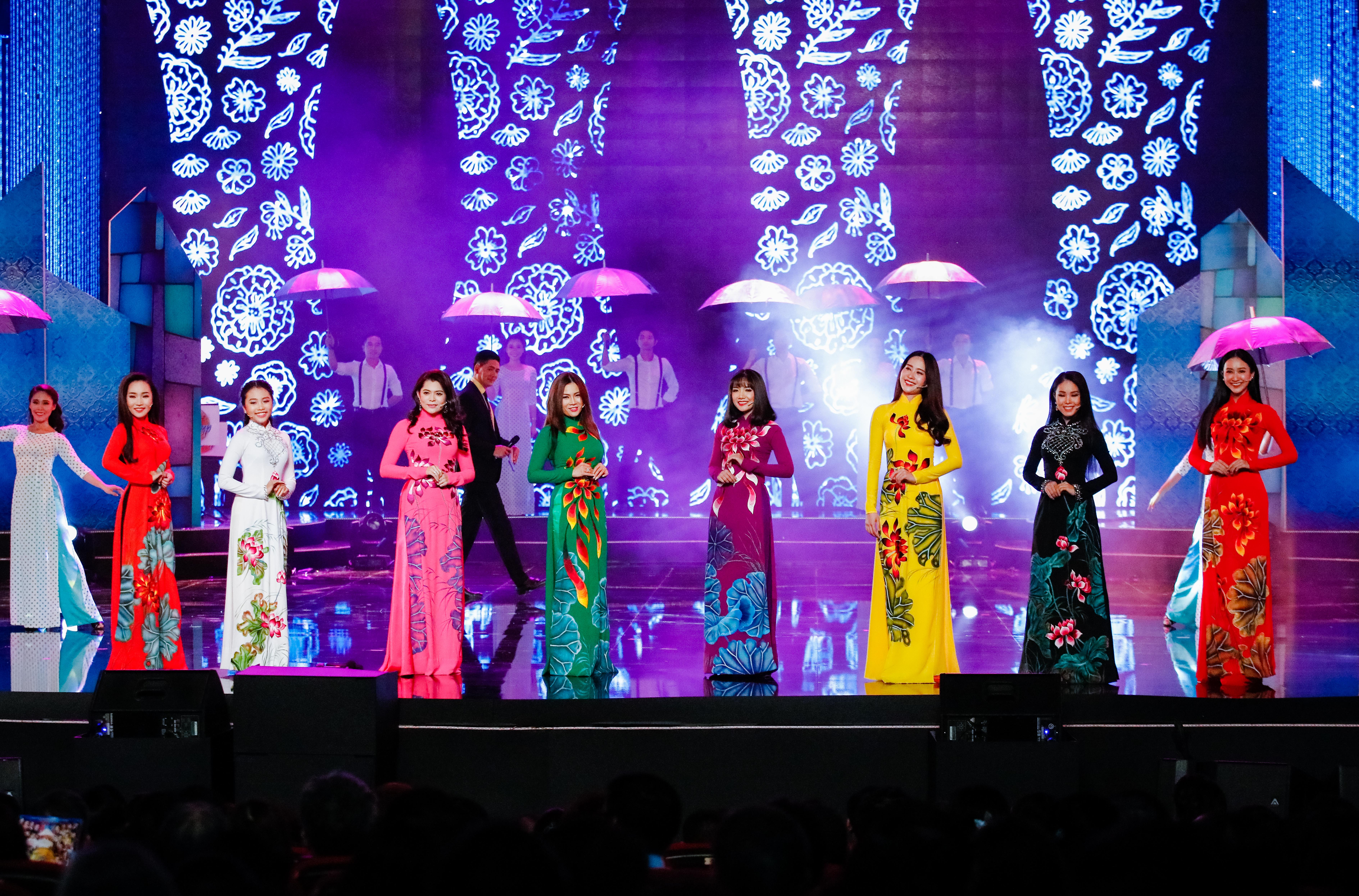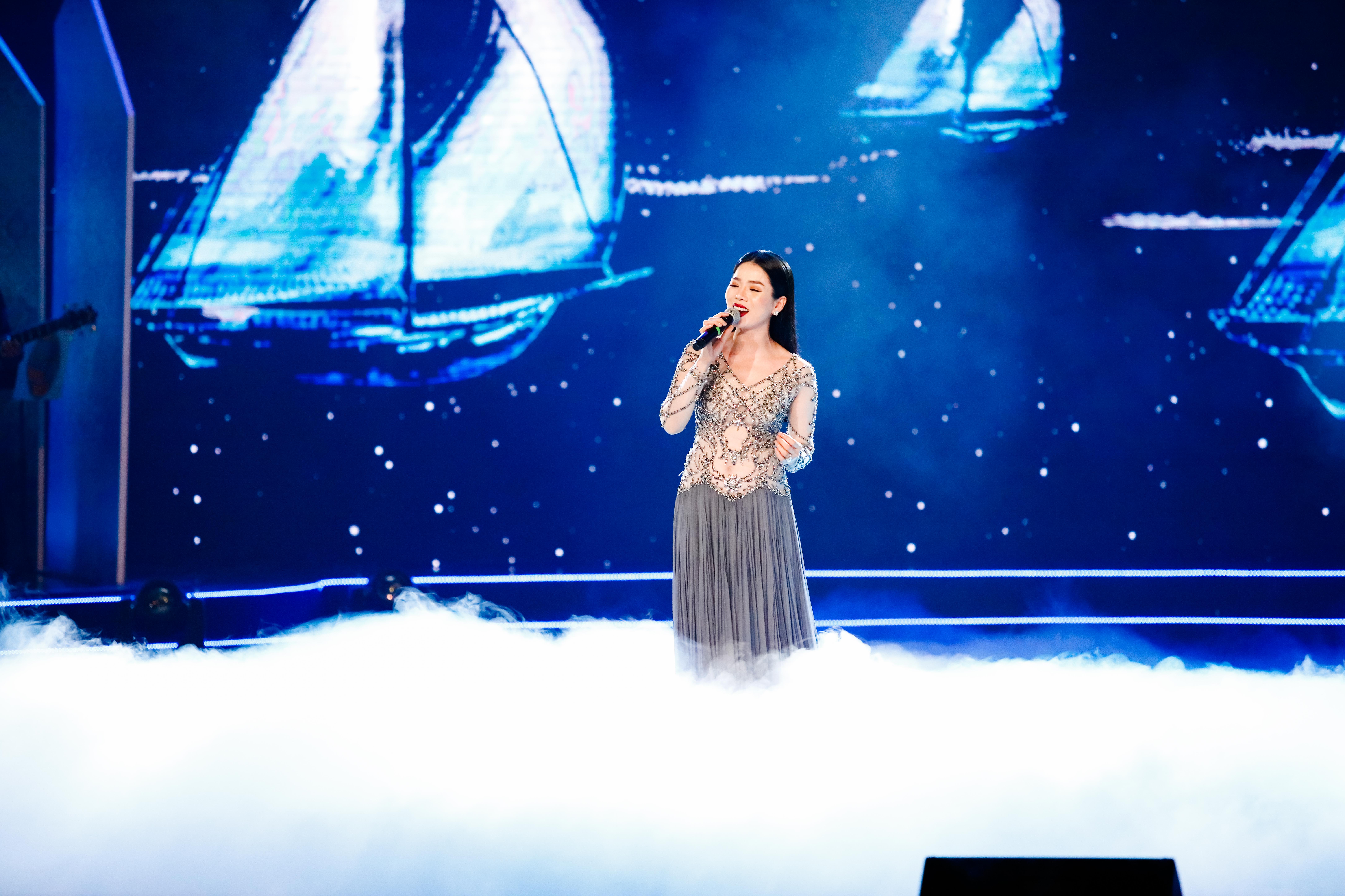 Lệ Quyên lộng lẫy trên sân khấu trong tiết mục Cánh buồm chuyển bến.