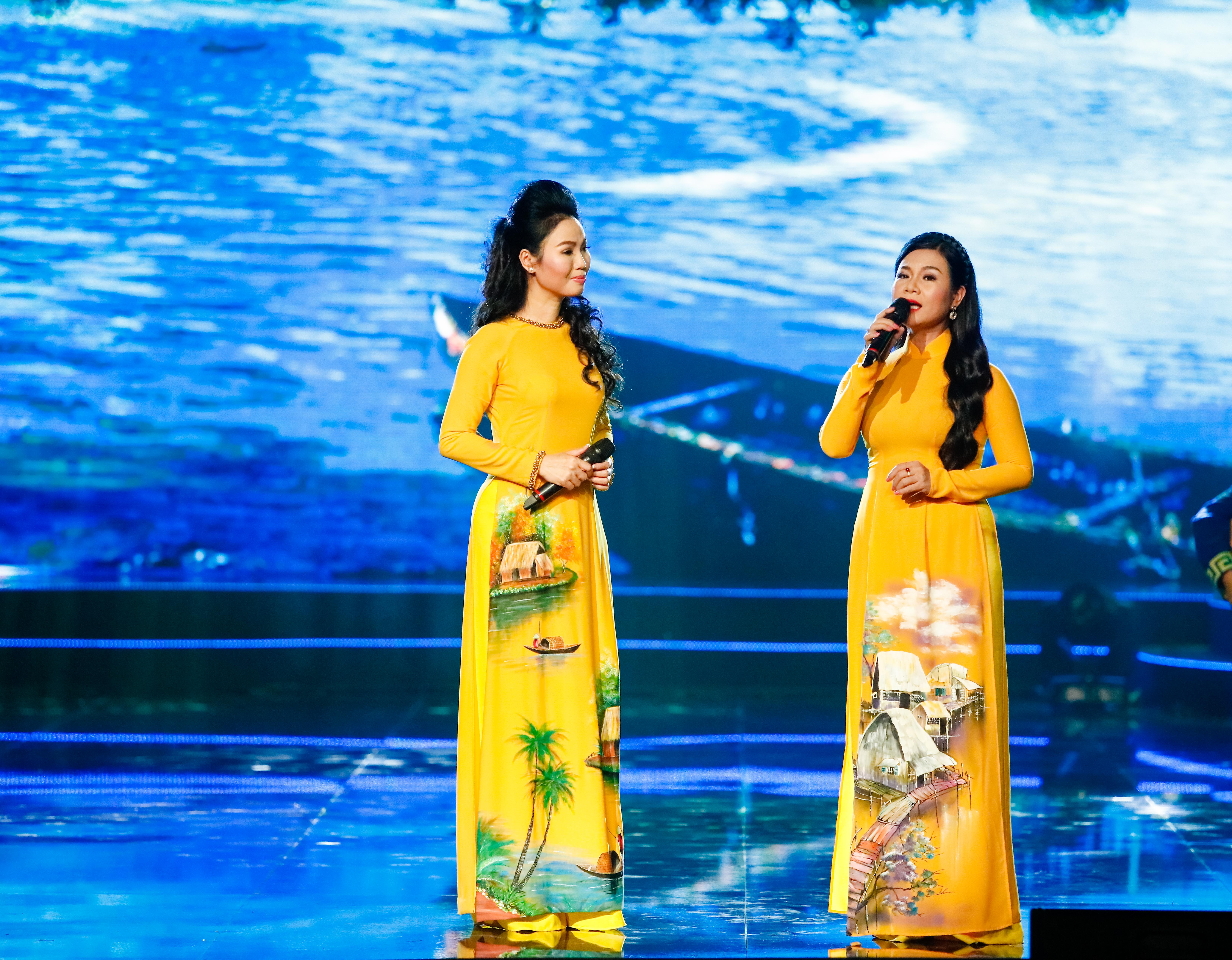 Cặp đôi Thuỳ Trang - Dương Hồng Loan cũng làm say lòng những ai có mặt trong đêm diễn bởi giọng hát ngọt ngào qua ca khúc Người đã sang sông.