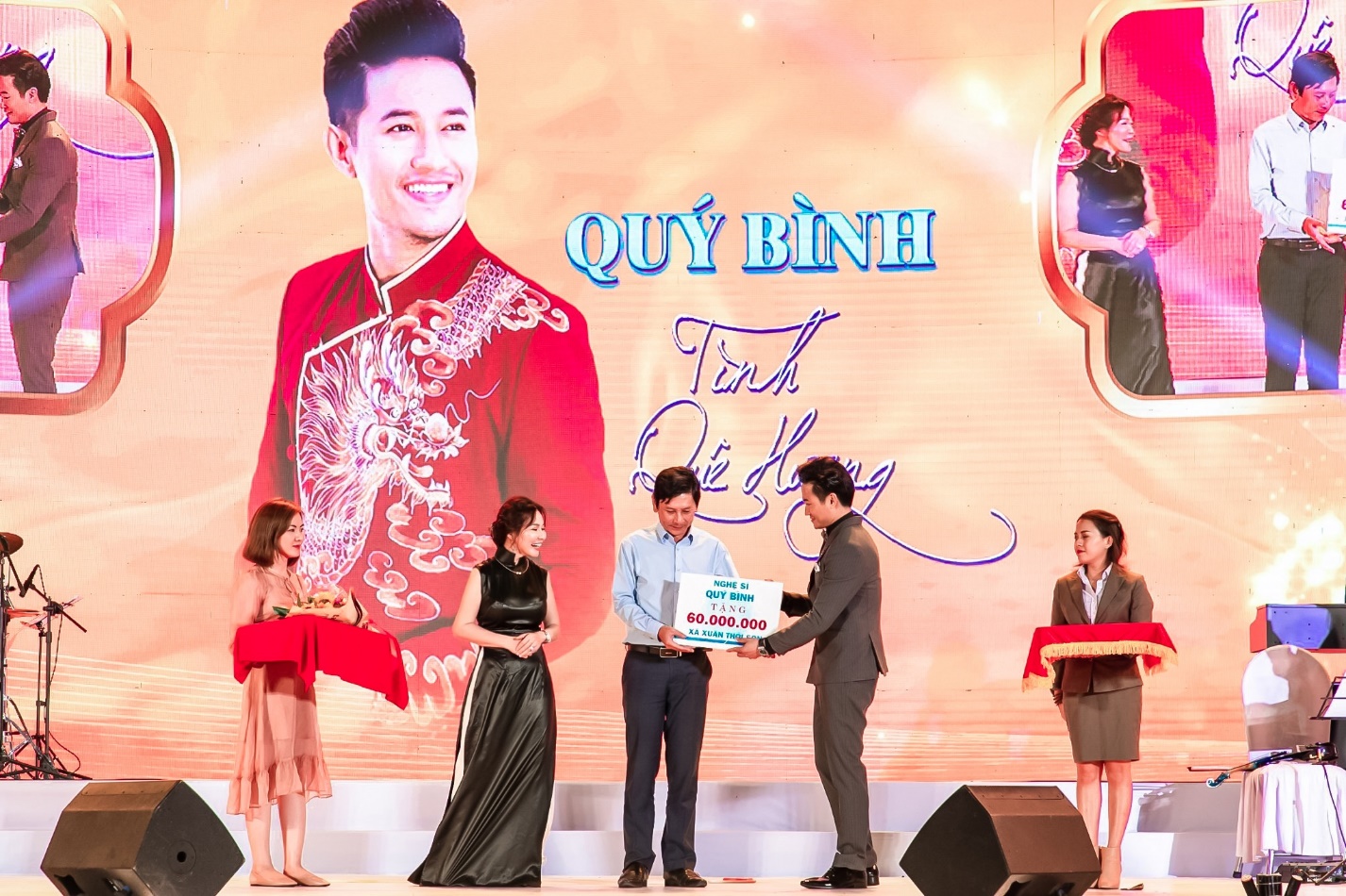 Không chỉ biểu diễn văn nghệ, chương trình còn giàu tính nhân văn khi đến thăm hỏi và trao tặng 7 phần quà tri ân cho 7 Mẹ Việt Nam Anh Hùng; gửi tặng cho người nghèo huyện Hóc Môn, xã Đông Thạnh và xã Xuân Thới Sơn số tiền trị giá lần lượt là 100 triệu đồng, 60 triệu đồng và 60 triệu đồng. Thông qua những phần quà ý nghĩa này, nghệ sĩ Quý Bình và công ty Bất động sản Đảo Vàng (tài trợ chính cho chương trình) hy vọng có thể san sẻ với bà con nghèo, mang đến cho họ một mùa Tết ấm no, sung túc hơn.