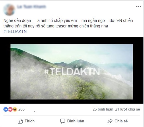 Mới đây, các fan Noo Phước Thịnh đang “rần rần” với chia sẻ mới nhất từ quản lý của anh. Cụ thể, sản phẩm mới nhất sắp được nam ca sĩ ra mắt mang tên #TELDAKTN đã được “nhá hàng” một câu trong bài hát: “Là anh cố chấp yêu em… mà ngẩn ngơ…”. Dù chưa từng hé lộ bất kỳ điều gì về ca khúc này nhưng với chỉ một câu này thôi, người hâm mộ có thể mường tượng được đây hẳn sẽ là một bản ballad sâu lắng với những ca từ “lụi tim”. Bên cạnh đó, quản lý của Noo Phước Thịnh còn hé lộ nếu tối nay, Đội tuyển Quốc gia Việt Nam chiến thắng trong trận Chung kết lượt đi thì sẽ có ngay bản teaser MV để các fan ăn mừng.