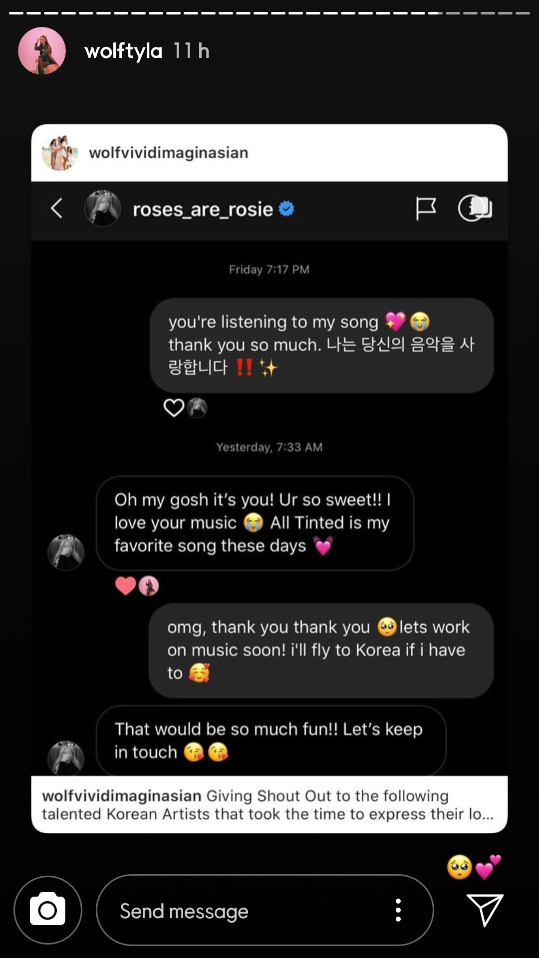 Story trên Instagram của Wolftyla về tin nhắn giữa cô và Rosé.