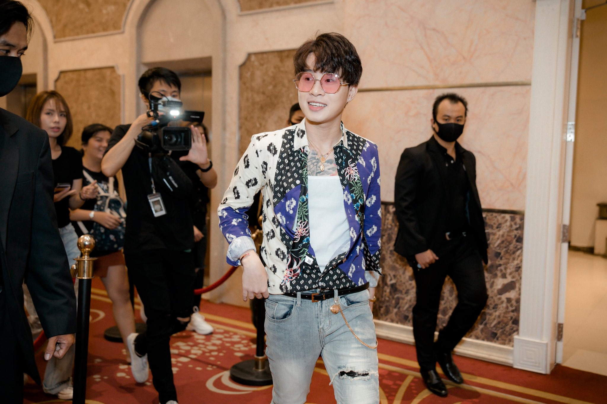 Chỉ mới quay trở lại sân khấu lần đầu tiên sau dịch nhưng Ali Hoàng Dương đã diện nguyên cây hồng nổi bật như muốn chặt chém cả showbiz. Hari Won cũng có mặt bên dưới khán đài sự kiện này, cô là người ghi lại đoạn clip biểu diễn của cậu em thân thiết và đăng tải lên story của mình.