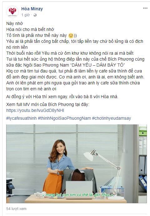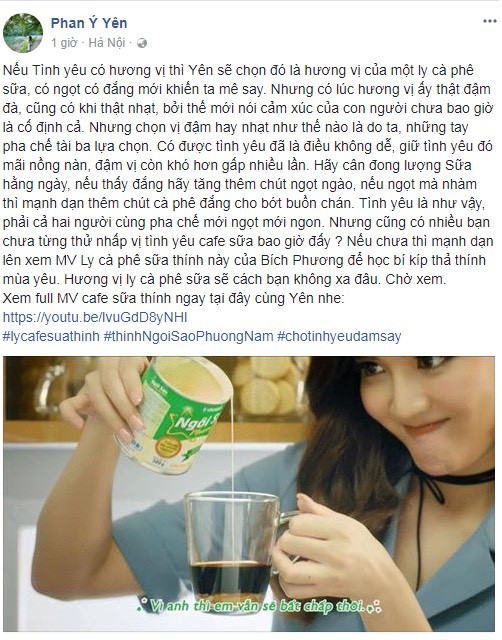 Những chia sẻ nhiệt tình của hàng loạt sao Việt nhanh chóng đưa ly cà phê sữa thường ngày trở thành xu hướng tỏ tình mới lạ, hữu hiệu trong mùa tình nhân năm nay. Sự đồng hành của Creamer đặc Ngôi sao Phương Nam, nhãn hiệu sữa đặc chuyên dùng để pha cà phê trong MV Ly cà phê sữa thính của Bích Phương lần này đã truyền cho phái nữ động lực vượt mọi rào cản tâm lý để dũng cảm nói ra lời yêu thương với người mình theo đuổi. Cà phê thì phải có Creamer đặc Ngôi sao Phương Nam sánh quyện, đã thích thì phải tỏ tình các nàng nhé!