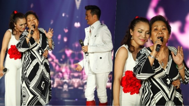 Giang Hồng Ngọc thể hiện Con sẽ sống vì mẹ bên cạnh mẹ cũng là người phụ diễn cho cô trong tiết mục.