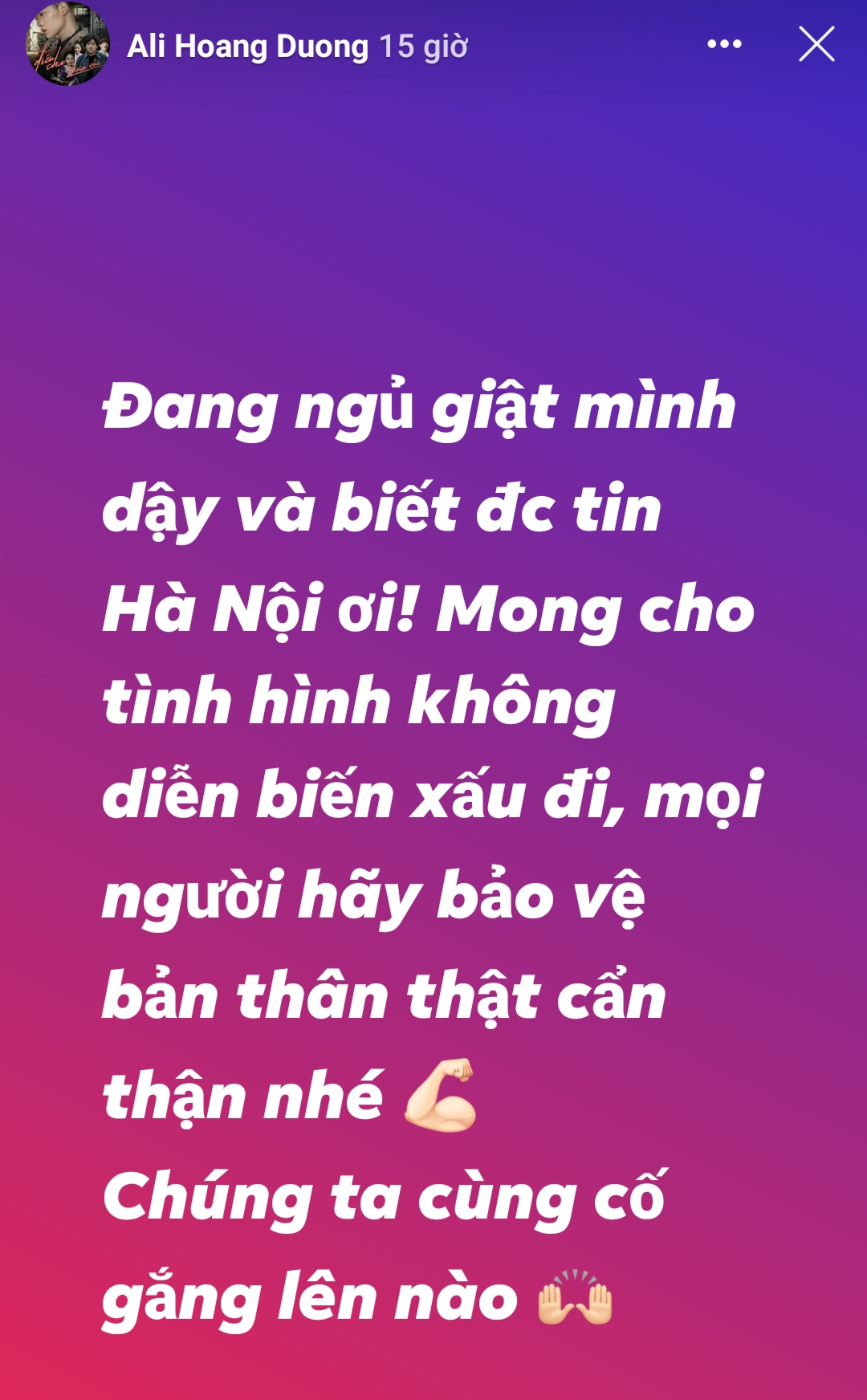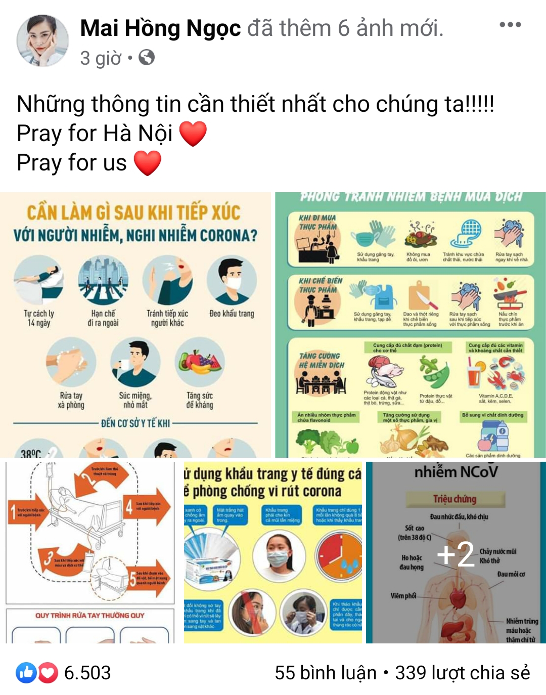 Tối ngày 6/3, cả đất nước Việt Nam gần như dậy sóng trước thông tin một phụ nữ được xác nhận nhiễm virus Covid-19 tại thủ đô Hà Nội. Không chỉ người dân mà cả những nghệ sĩ của Showbiz cũng dùng sự ảnh hưởng của mình để chia sẻ những bài viết động viên, tuyên truyền bảo vệ sức khỏe cho mọi người. Chỉ cần vài cú click trên facebook, không khó để nhìn ra loạt bài đăng từ các ngôi sao Vpop, đồng lòng hướng về Hà Nội nói riêng và cả nước nói chung giữa thời điểm đáng báo động.