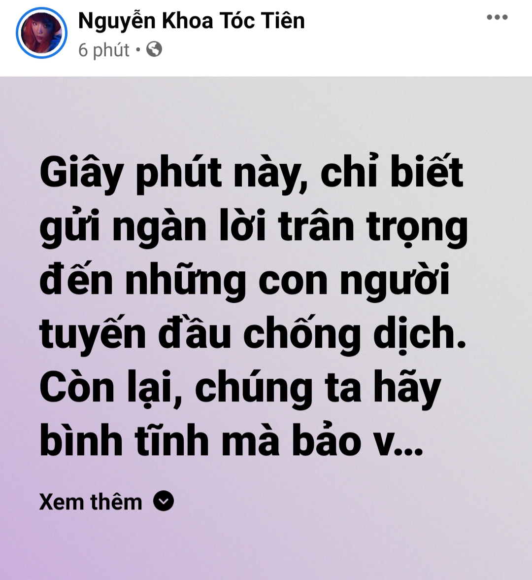 Tóc Tiên gửi lời động viên đến những “chiến binh” đang chống chọi với dịch bệnh.
