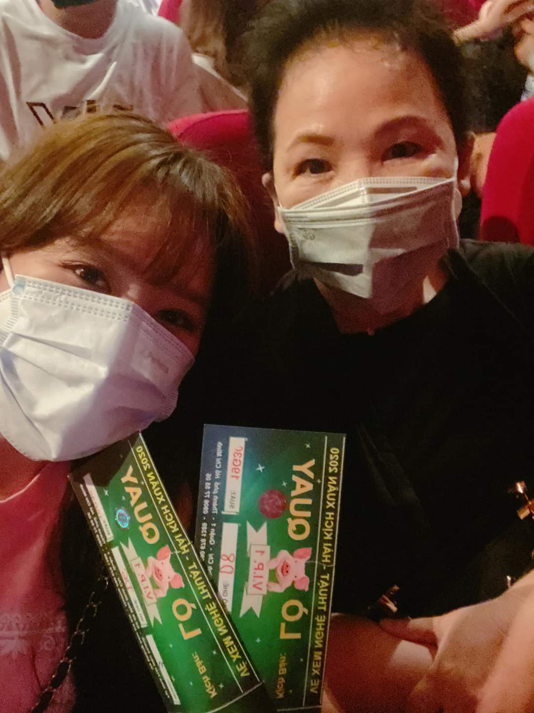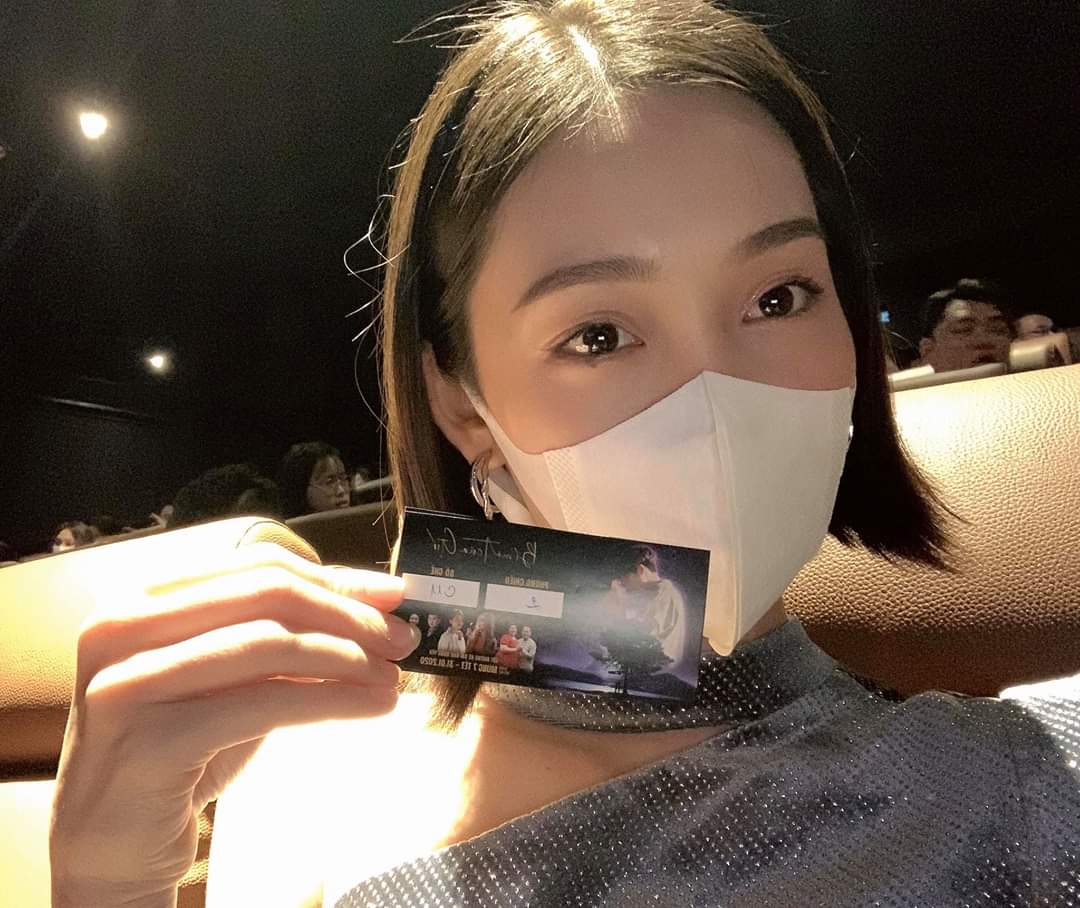 Hari Won đi xem kịch cùng người thân nhưng vẫn không quên trang bị cho bản thân dụng cụ phòng bệnh.