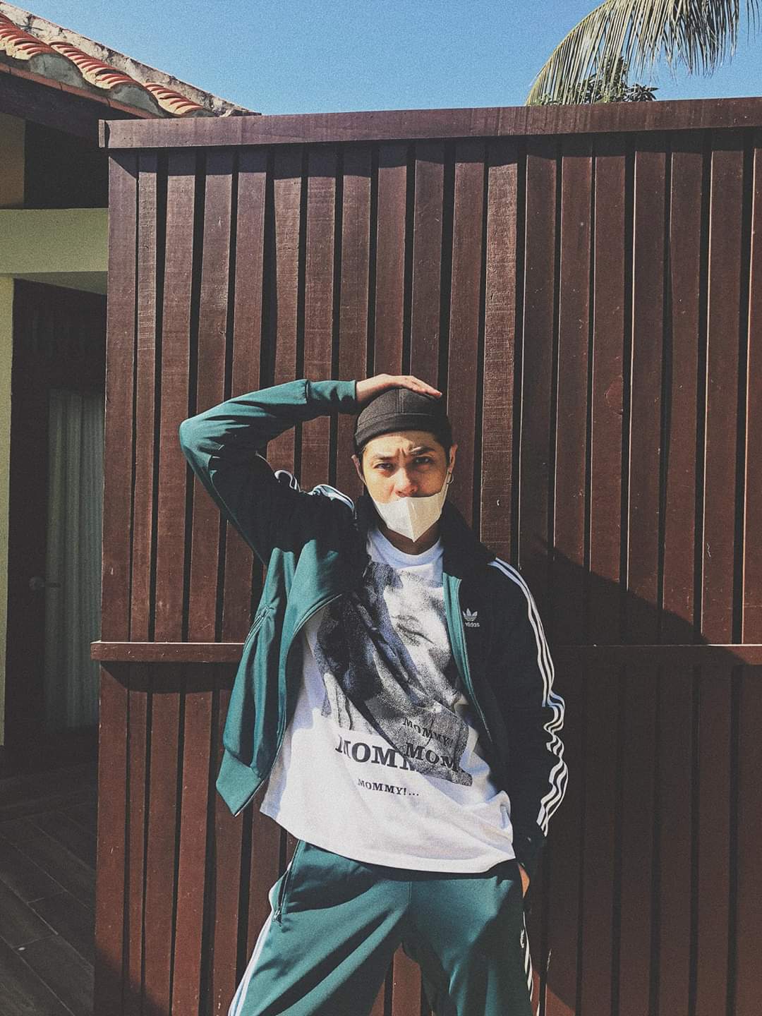 Đức Phúc tạm gỡ chiếc khẩu trang trên mặt để selfie.