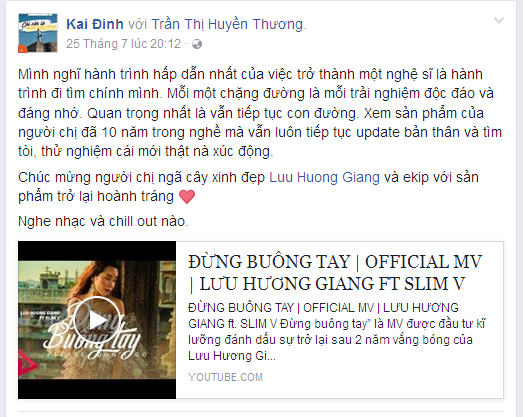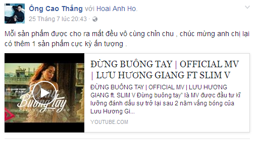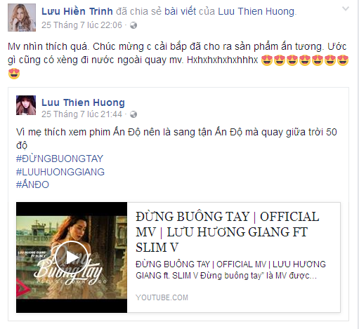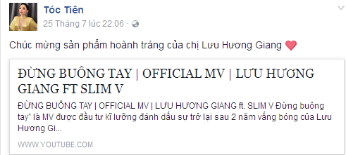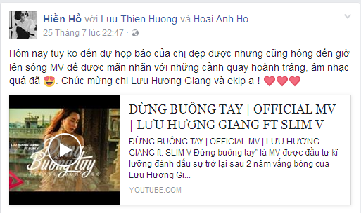Hiền Hồ đều gửi lời chúc mừng sản phẩm âm nhạc trở lại của Lưu Hương Giang.