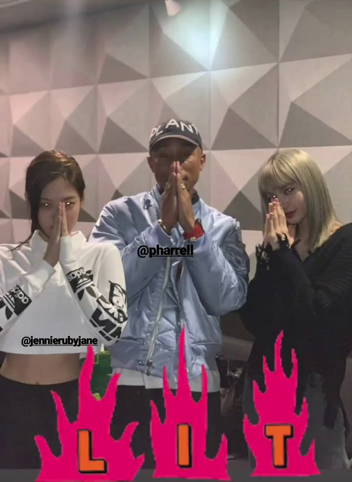 Mới đây, Jennie và Lisa, hai mảnh ghép của BlackPink, đã gây ngạc nhiên đến cộng đồng người hâm mộ khi chụp hình chung với Pharrell Willams, sau khi tin tức về việc BlackPink sẽ biểu diễn chung với Pharrell tại một sự kiện riêng tư. Điều đáng nói hơn, địa điểm của cuộc gặp mặt không phải là một địa điểm thông thường, mà chính là một phòng thu âm chuyên nghiệp của Pharrell.