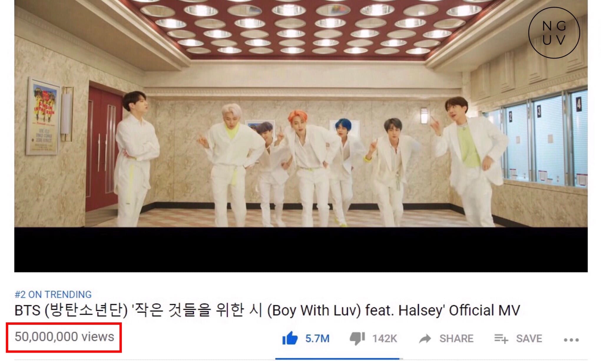 MV đạt 50 triệu lượt xem cùng 5,7 triệu lượt ưa thích sau chỉ hơn 13 tiếng đồng hồ phát hành.