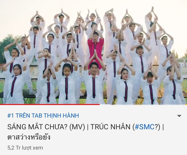 Vậy nhưng, phải đến MV Sáng mắt chưa vừa được ra mắt đầu tháng 8 vừa qua, Trúc Nhân mới lần đầu tiên đạt được thành tích dẫn đầu bảng xếp hạng thịnh hành Youtube. Ca khúc là một sản phẩm mang thông điệp đầy tính nhân văn về cộng đồng LGBT. Từ giai điệu vui tươi rộn ràng cho đến ca từ trào phúng, hài hước đều mang đến sự thích thú cho khán giả. Với tất cả sự đồng điệu đó, không quá ngạc nhiên khi Sáng mắt chưa đã nhận được lượt xem “khủng” của khán giả khi chỉ vừa lên sóng không lâu. Thậm chí, anh chàng Trúc Nhân cũng không giấu được những giọt nước mắt khi lần đầu đạt được thành tích tự hào này.