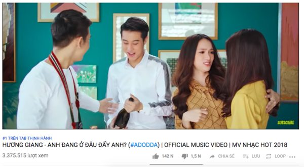 Sự trở lại của Hương Giang trên “đường đua” Vpop vào cuối năm 2018 với MV Anh đang ở đâu đấy anh bỗng trở thành “cơn sốt” và là tiêu điểm của sự chú ý. Từ câu chuyện drama đầy hấp dẫn kịch tính, lối diễn xuất của Hương Giang cho đến tất cả diễn viên trong MV đều tạo nên sự lôi cuốn không thể tưởng tượng với một sản phẩm âm nhạc. Dù với dòng nhạc ballad quá đỗi quen thuộc nhưng với cách truyền tải đầy cảm xúc của nữ ca sĩ đã khiến cho Anh đang ở đâu đấy anh trở thành một hiện tượng và viral khắp các trang mạng xã hội.
