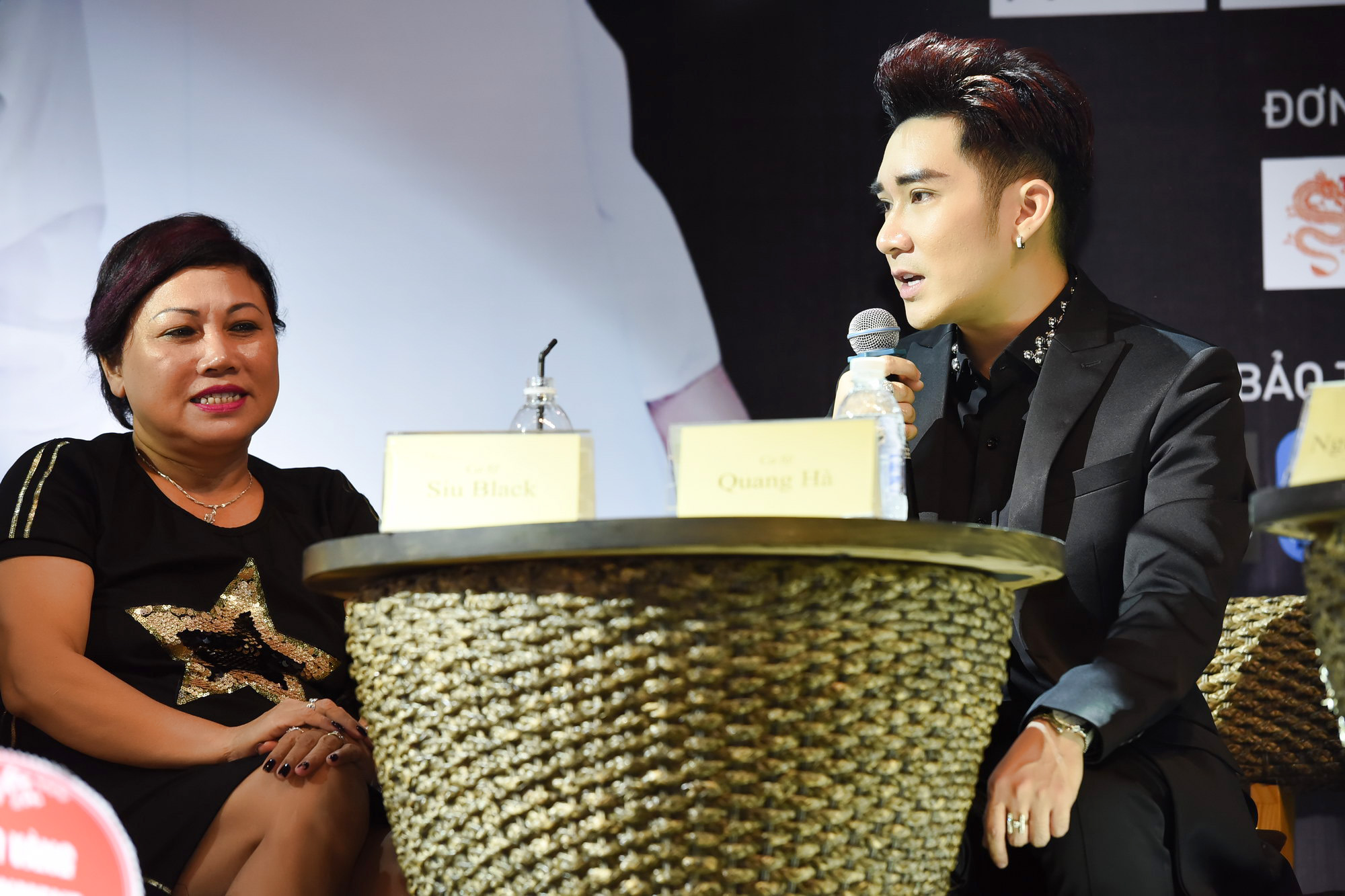 Quang Hà không giấu nổi cảm xúc bất ngờ khi thấy đàn chị Siu Black xuất hiện trong buổi họp báo. Được biết, nữ ca sĩ đã vội vã từ sân bay Nội Bài đến thẳng địa điểm mà không kịp về khách sạn thay quần áo. Vừa đến nơi, “họa mi núi rừng” ngay lập tức lên sân khấu song ca cùng chủ nhân buổi họp báo với ca khúc đình đám Ly cà phê Ban Mê.