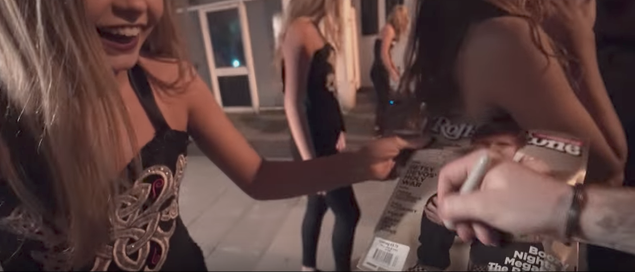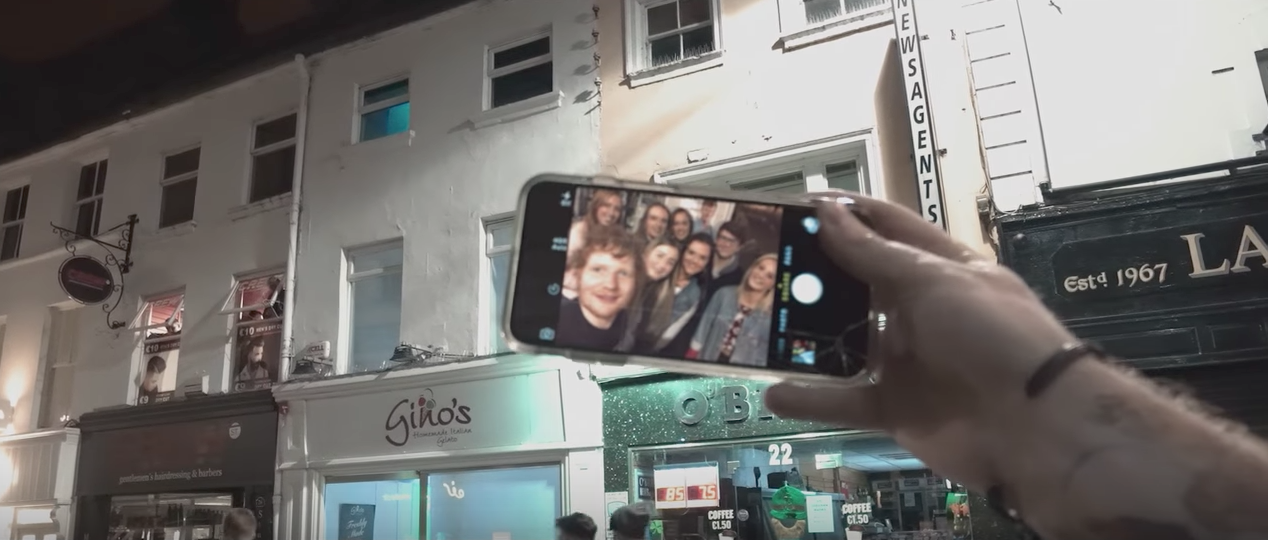 Ed kí tặng cho fan là một nhóm vũ công khi gặp họ trên đường phố.