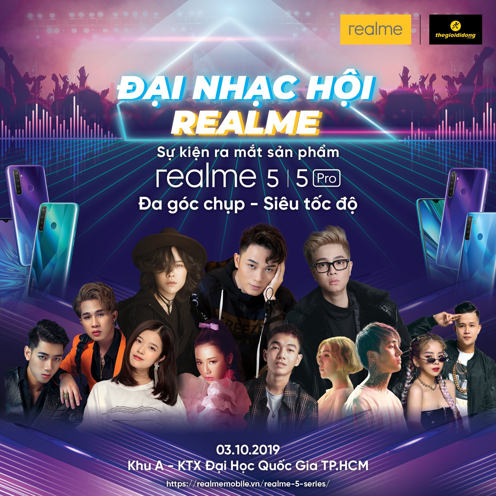 Chỉ vài ngày nữa thôi, hơn 30.000 bạn trẻ Sài Thành sẽ được dịp “cháy hết mình” trong đêm nhạc hội launching siêu hoành tráng của realme diễn ra vào ngày 3/10 sắp tới. Tham gia sự kiện, giới trẻ sẽ được hòa cùng nhịp điệu, sung “hết nấc” với những bản hit, remix đến từ loạt ngôi sao đình đám của làng V-Biz.