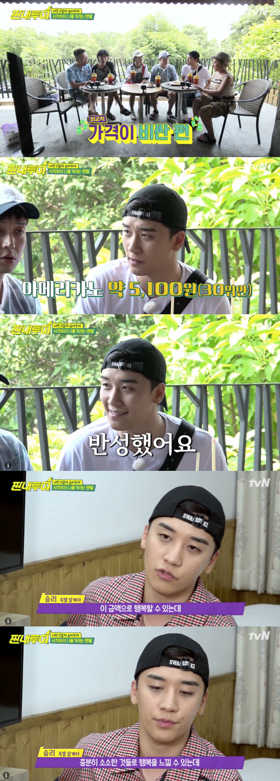 Tham gia chương trình, Seungri có vẻ lo lắng về việc Park Na Rae phải ngủ ở phòng phạt khi vượt quá ngân sách 3,42 USD. Anh chàng đã phải dành cả đêm để tính toán lại cũng như lên kế hoạch cho chuyến đi du lịch được suôn sẻ hơn.