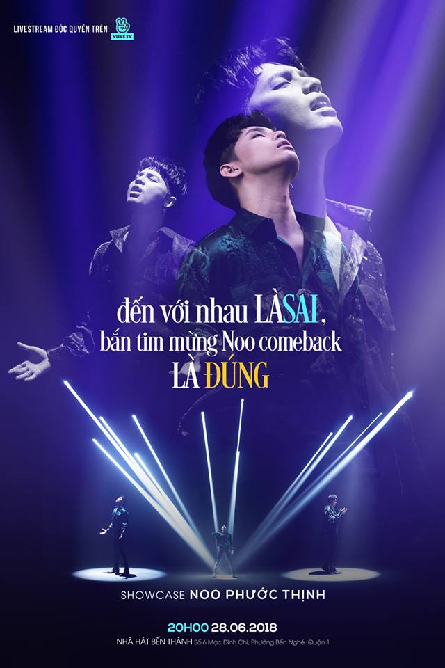 Vào chiều nay (28/6), MV mới nhất đánh dấu sự trở lại của Noo Phước Thịnh - Đến với nhau là sai đã được ra mắt chính thức. Cùng với đó, một showcase đặc biệt mang tên Noo Phước Thịnh Showcase in HCM - Đến với nhau là sai!!! Hay Đúng??? do Noo tổ chức dành tặng các fan của mình đã được livestream trực tiếp trên ứng dụng VLIVE.