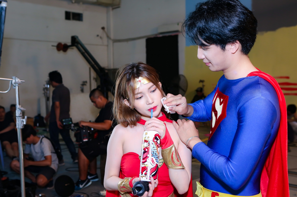 Sau những giờ quay căng thẳng, Sĩ Thanh và Hạo Đông luôn quan tâm, chăm sóc lẫn nhau khiến ekip có mặt tại phim trường phải ganh tị.
