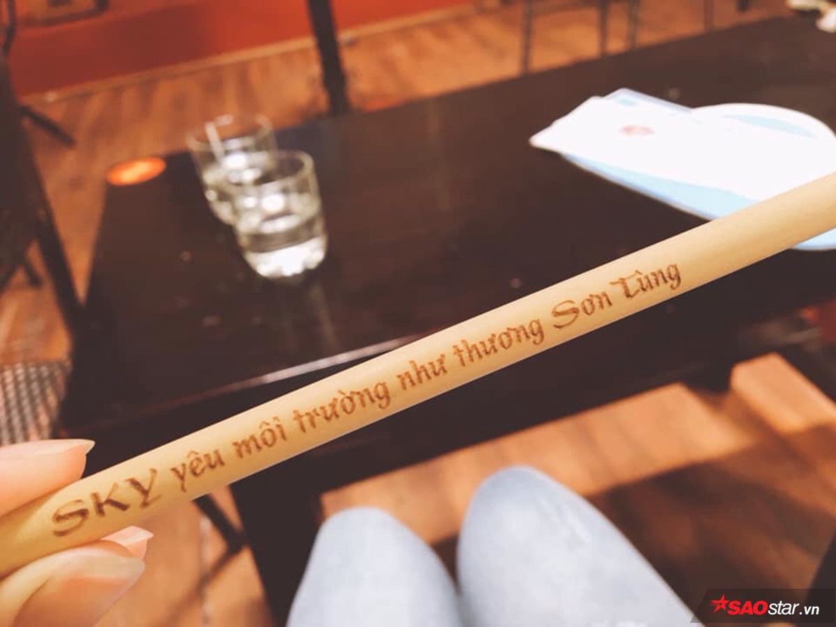 Thay vì dùng ống hút nhựa như bình thường thì các Sky còn làm hẳn chiếc ống hút bằng tre.