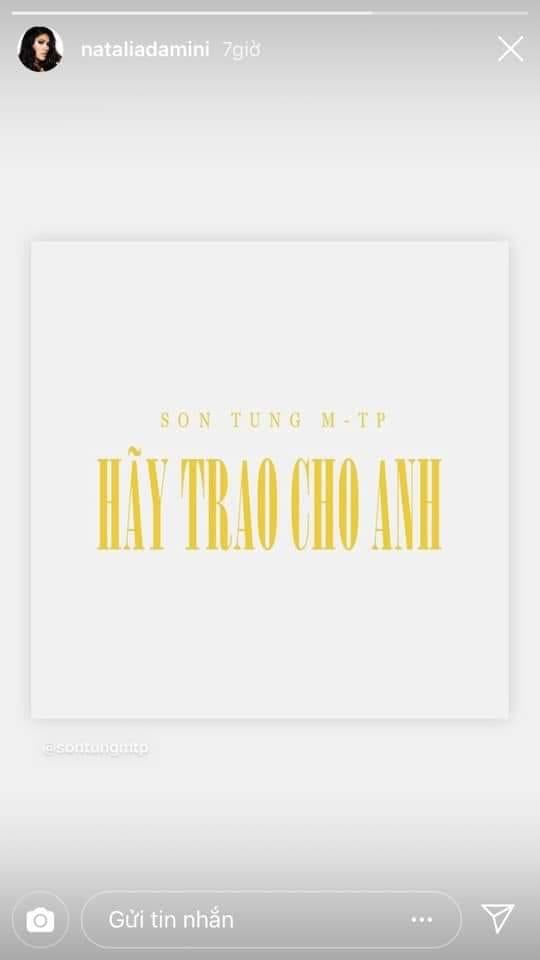 Hình ảnh dự án Hãy trao cho anh của Sơn Tùng M-TP được nữ ca sĩ Natalia đăng tải trên trang story cá nhân.