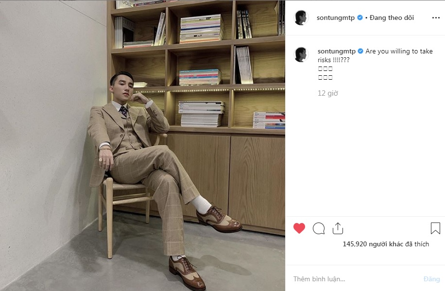 Không những thế, dòng trạng thái “Are you willing to take risks?” (Tạm dịch: “Bạn có chấp nhận thử thách?”) cũng khiến nhiều người chú ý. Đã rất lâu rồi, Sơn Tùng M-TP mới gửi gắm một câu hỏi khiến người hâm mộ vô cùng hoang mang và không biết anh muốn nói điều gì.