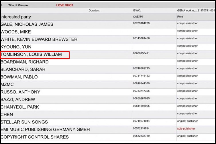 Tên của Louis Tomlinson bất ngờ có mặt trong danh sách nhà sản xuất Love Shot.