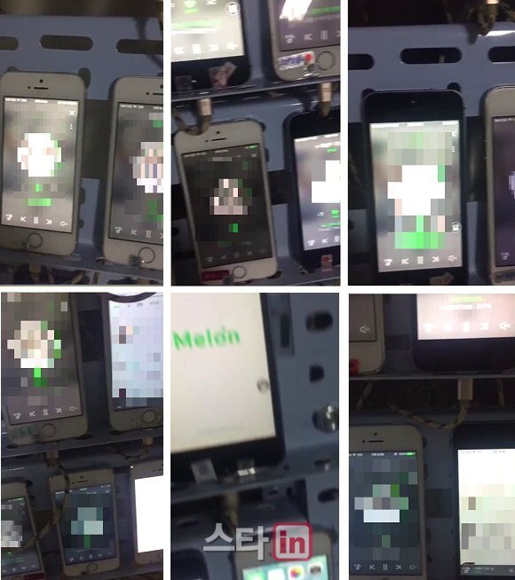 Có thể thấy, các điện thoại di động đang được vận hành hết công suất để “hỗ trợ” gian lận. Trong hình, công ty này đang thực hiện stream nhạc của một ca sĩ nữ.