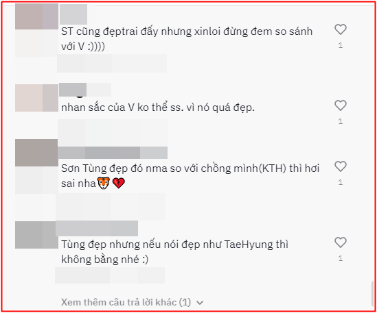 Bên cạnh đó, vẫn có ý kiến cho rằng V và Sơn Tùng đều sở hữu nét đẹp riêng, không nên so sánh vì dễ gây ra sự bất đồng giữa 2 fandom.