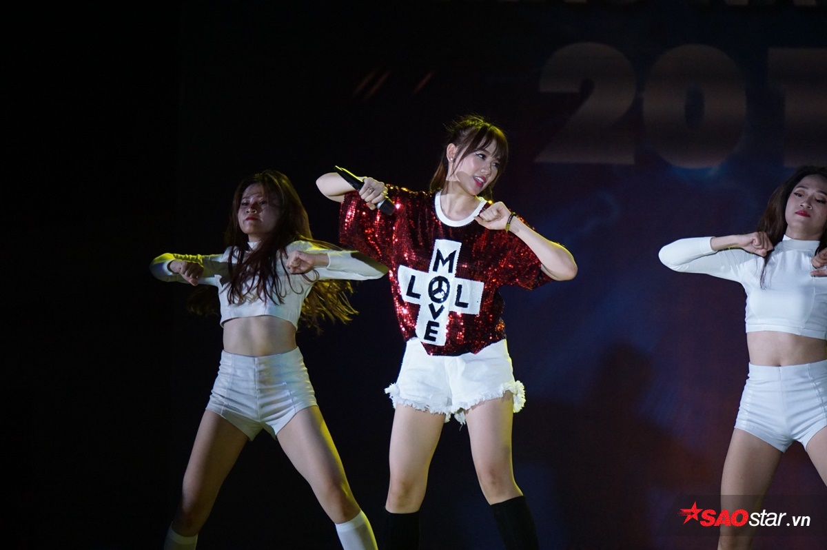 Nụ cười luôn thường trực xuất hiện khi cô nàng trình diễn.