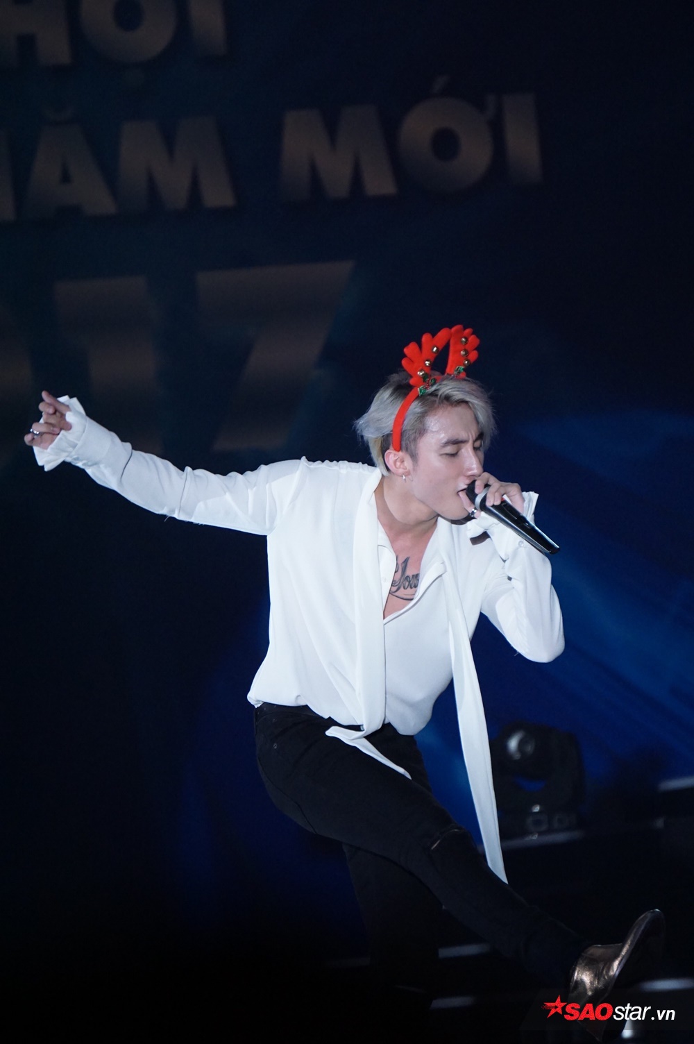 Đặc biệt, vì đêm diễn đúng dịp Giáng sinh nên Sơn Tùng chẳng ngại đội chiếc băng cài đầu tuần lộc cực dễ thương.