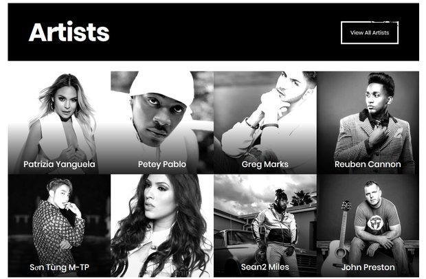 Hình ảnh Sơn Tùng M-TP trên trang chủ của hãng thu âm Concore Entertainment.