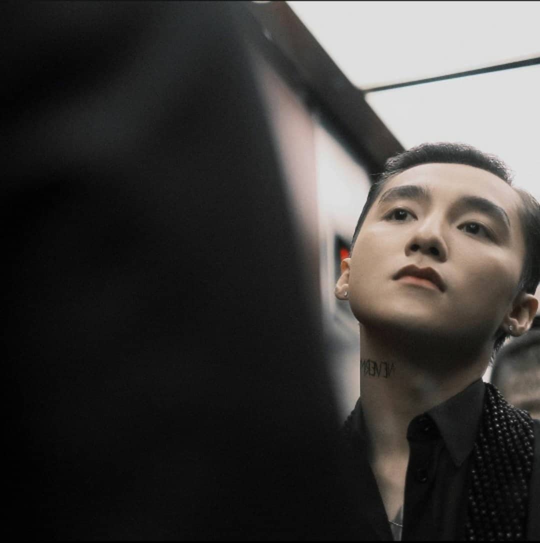 Dòng chữ NEVER MIND trên cổ Sơn Tùng M-TP.