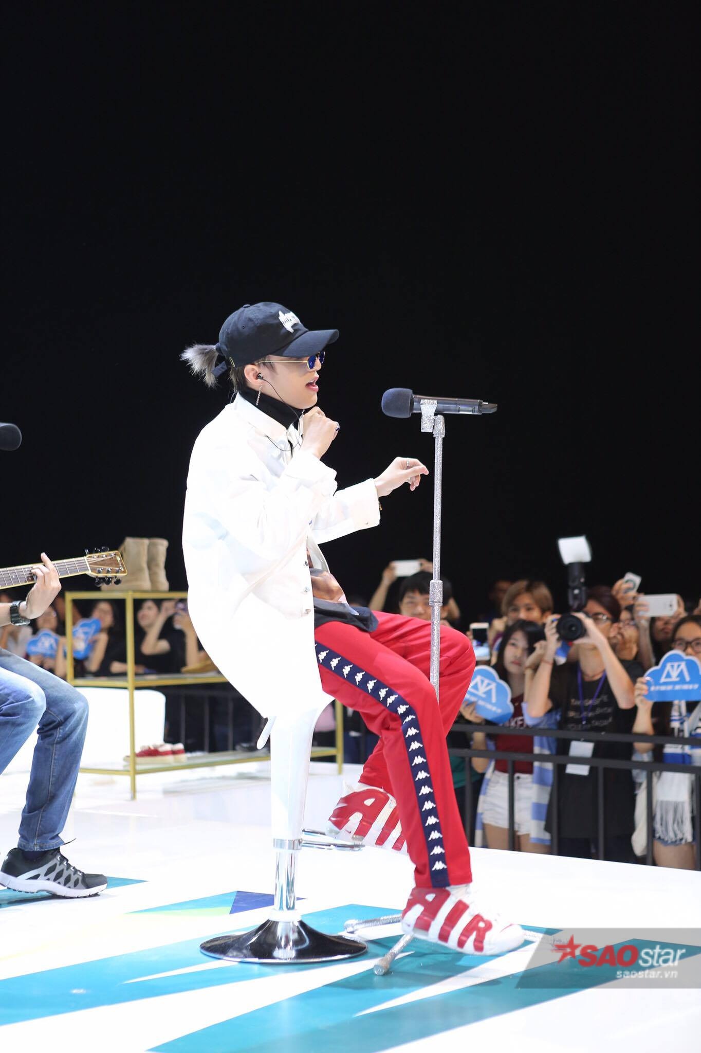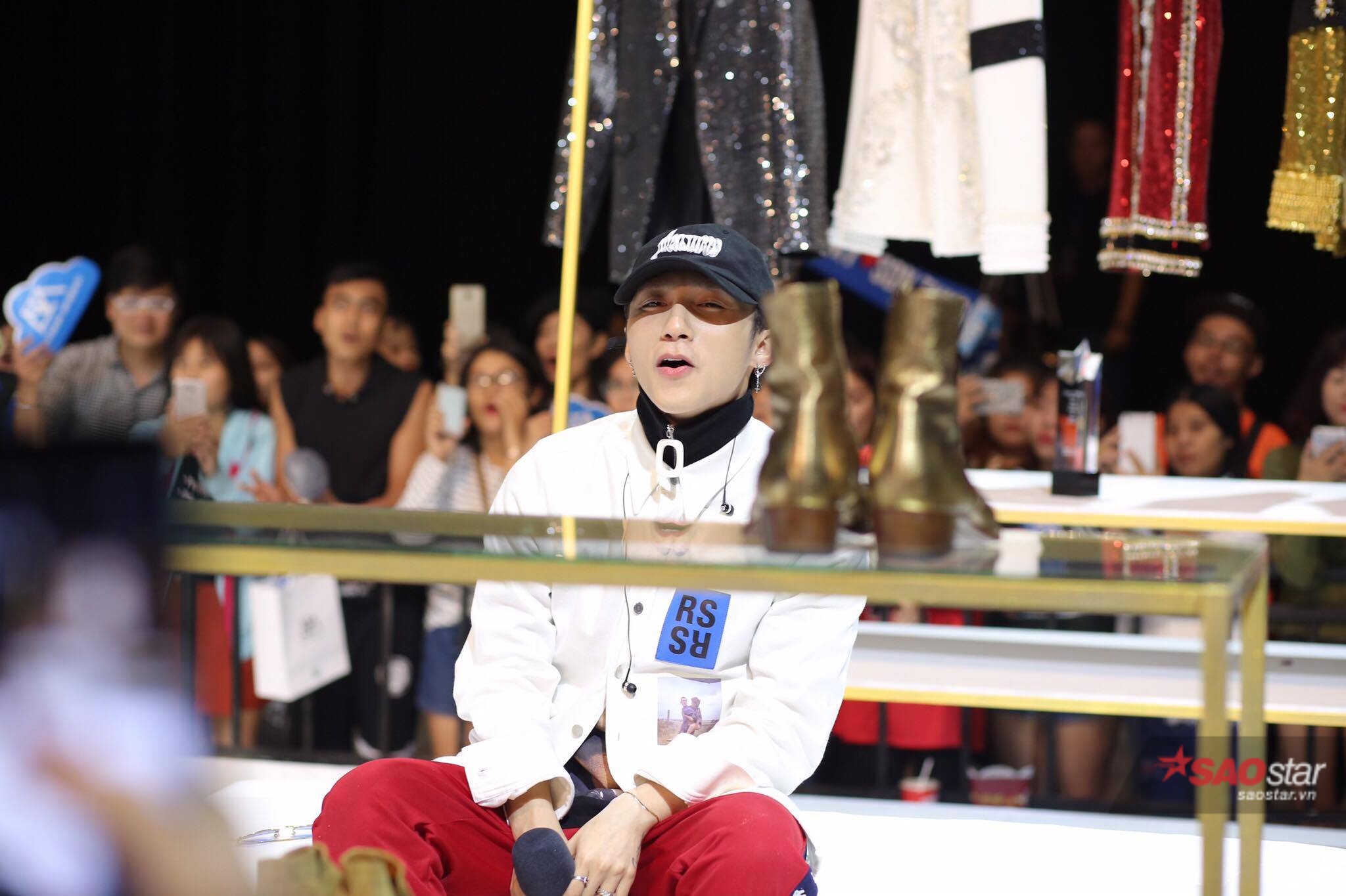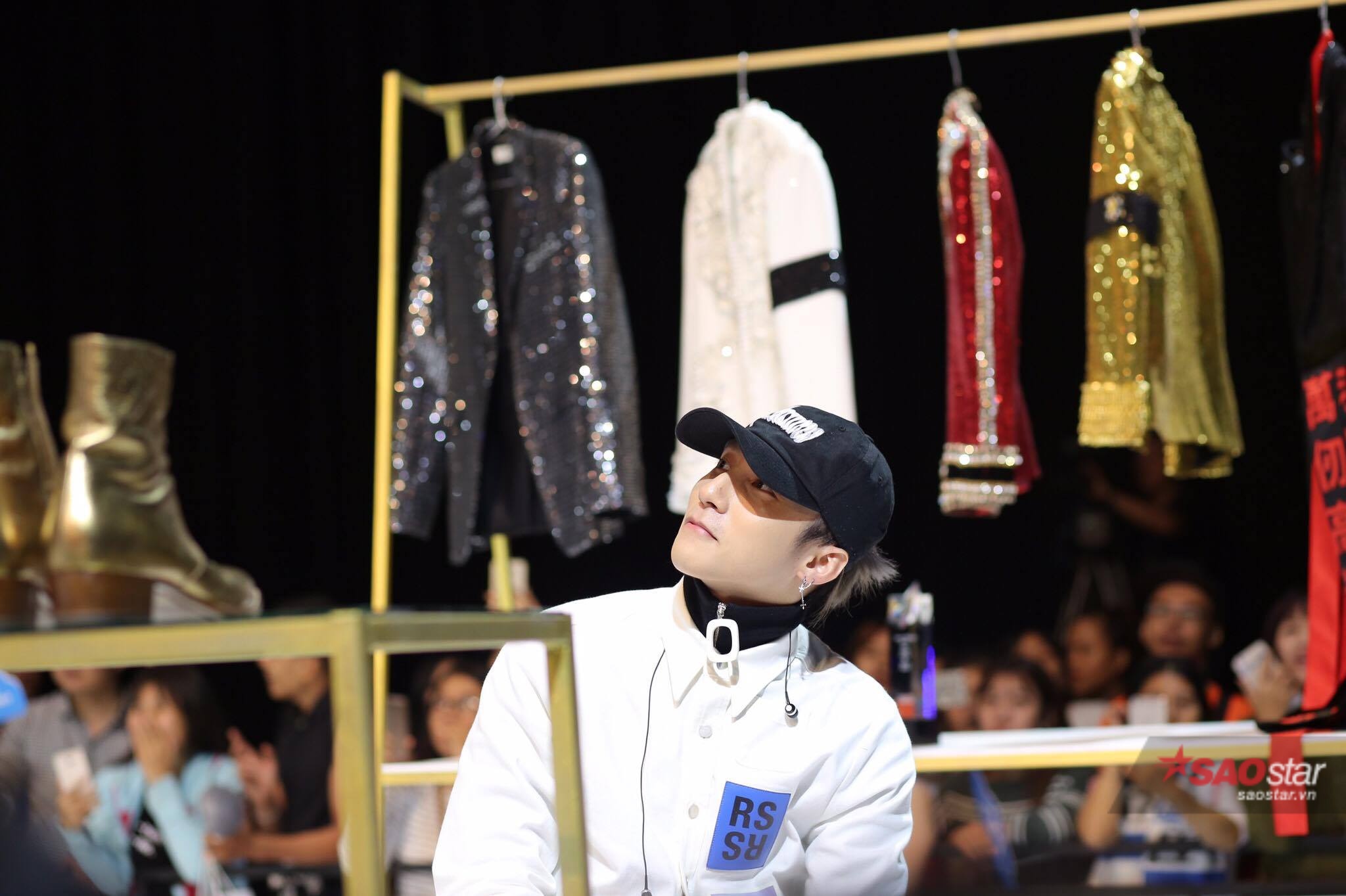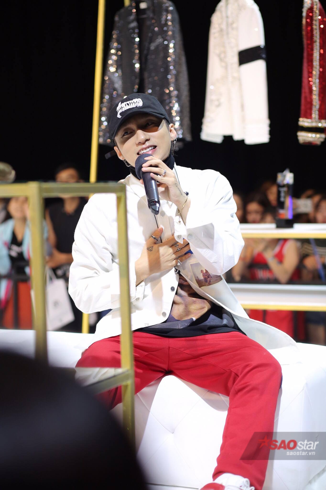 Xuất hiện trên sân khấu buổi họp fan, Sơn Tùng diện trang phục cá tính.
