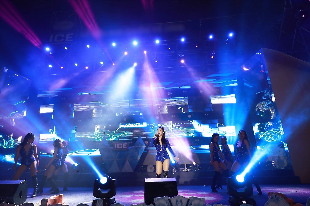 Nữ ca sĩ xinh đẹp Miu Lê khuấy động đám đông với 4 ca khúc làm nên tên tuổi: Yêu một người có lẽ, Anh đang nơi đâu, Mình yêu nhau từ bao giờ.