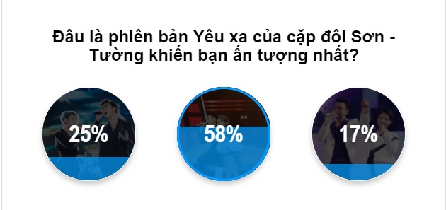 Và ngay sau khi bài viết Soobin Hoàng Sơn cứ 'yêu xa' Vũ Cát Tường ngọt thế này thì fan 'ngả nghiêng' mãi sao thể đứng vững? lên sóng, đông đảo độc giả của SAOstar đã bày tỏ sự quan tâm, thích thú và bình chọn cho phần trình diễn Yêu xa của cặp đôi “Sơn - Tường” ấn tượng nhất. Không quá bất ngờ khi 58% khán giả đã “đổ gục” trước những cử chỉ ôm chặt và nắm tay nhau ngân vang sáng tác của Vũ Cát Tường đầy tình cảm tại buổi ghi hình Vòng Giấu mặt Giọng hát Việt nhí 2018.