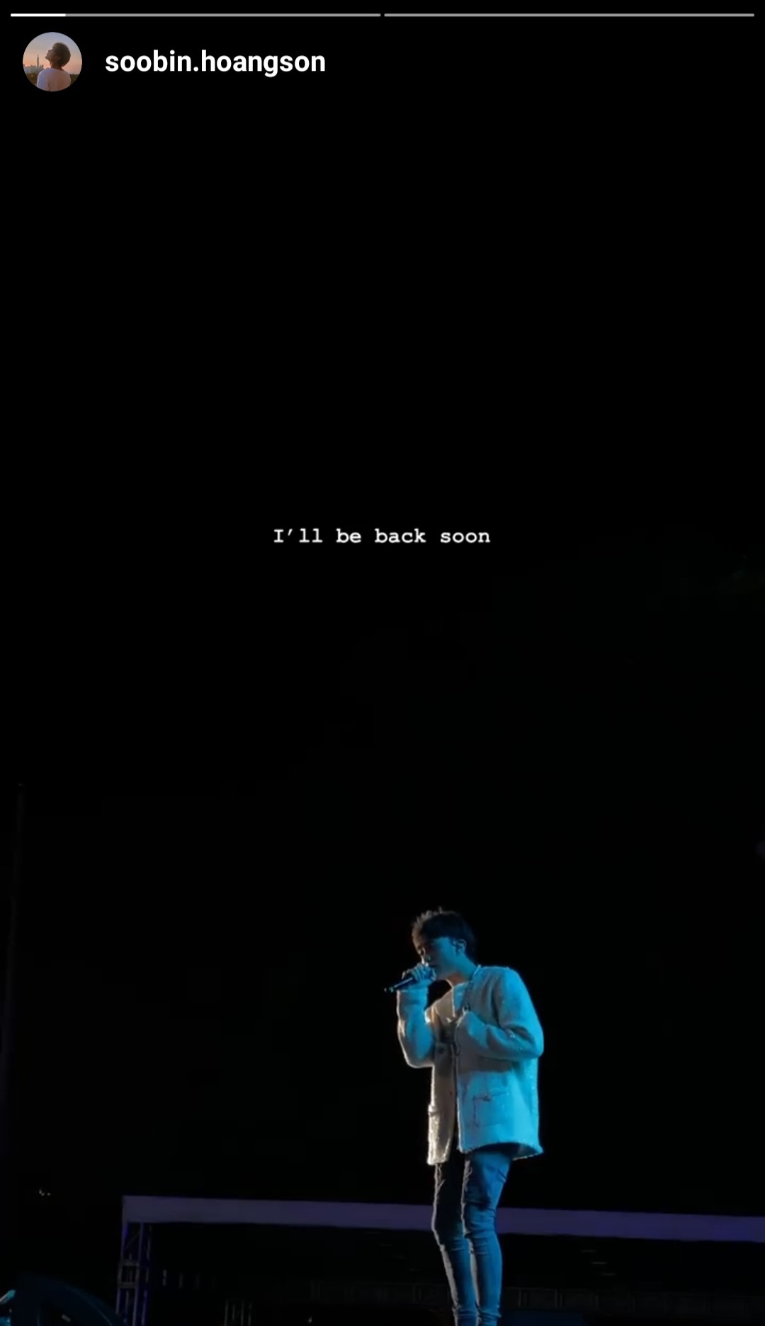 Cụ thể, trang Instagram cá nhân của Soobin Hoàng Sơn đã chia sẻ hình ảnh anh chàng đang say sưa trình diễn trên sân khấu, cùng với đó là dòng caption: “I'll back soon (Tôi sẽ sớm trở lại)“. Có thể thấy được rằng đây chính là lời thông báo cho màn tái xuất của Soobin Hoàng Sơn khi cả showbiz đang rầm rộ trở lại hậu cách ly xã hội.