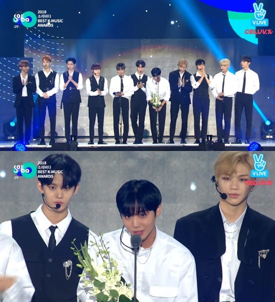 WANNA ONE nhận giải Nghệ sĩ được yêu thích nhất tại Soribada Awards 2018.