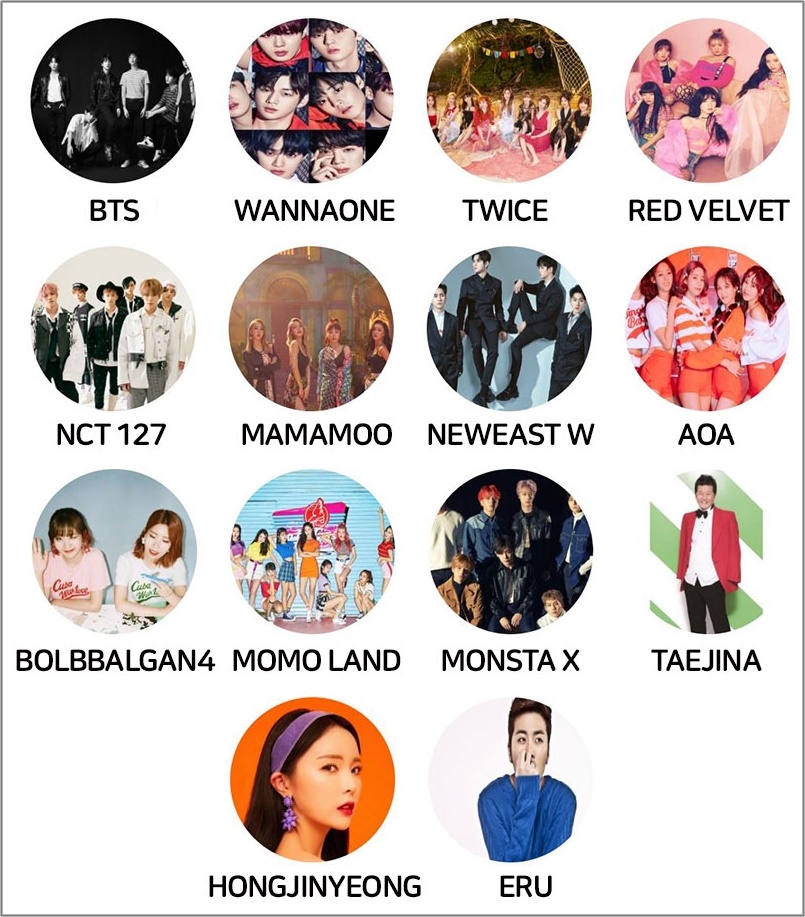 Dàn lineup toàn những tên tuổi hàng đầu Kpop tại Soribada Best K-Music Awards 2018.